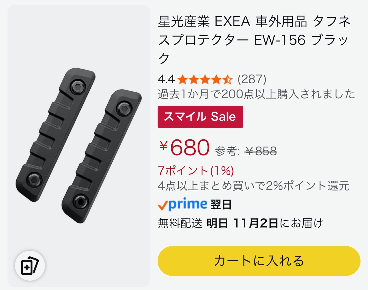 ドアパンチやドアの傷防止のドアガードなのだが、無骨なデザインでワンポイントカスタムにもなるパーツ。48Rもカーメイトの同様な製品を使用しているが、星光産業さんのドアガードがセール中です!