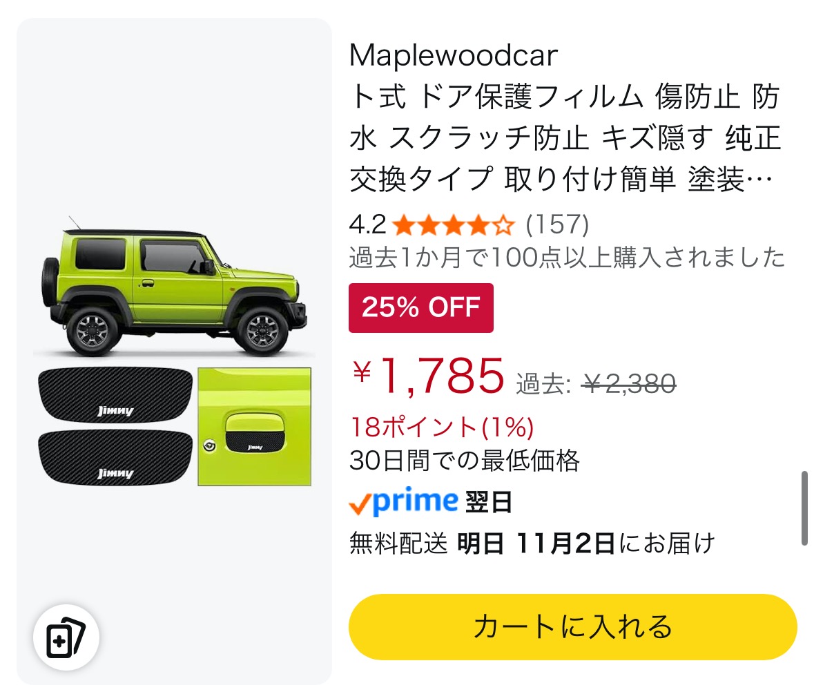 【ドアパンチ傷防止】JB64/JB74ジムニーにドアガード(カーメイトDZ578)を取り付ける