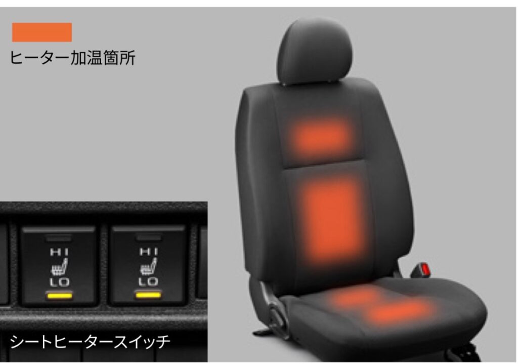スーパーGLに背もたれと座面を温めてくれるシートヒーターが追加。寒い日に重宝すること間違いなし(48Rの趣味車のジムニーも装備されているが、冬は大活躍している)。