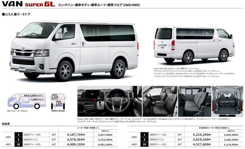 ジリジリ価格が上がるハイエースのマイナーチェンジ。今回は約12万円の上昇。