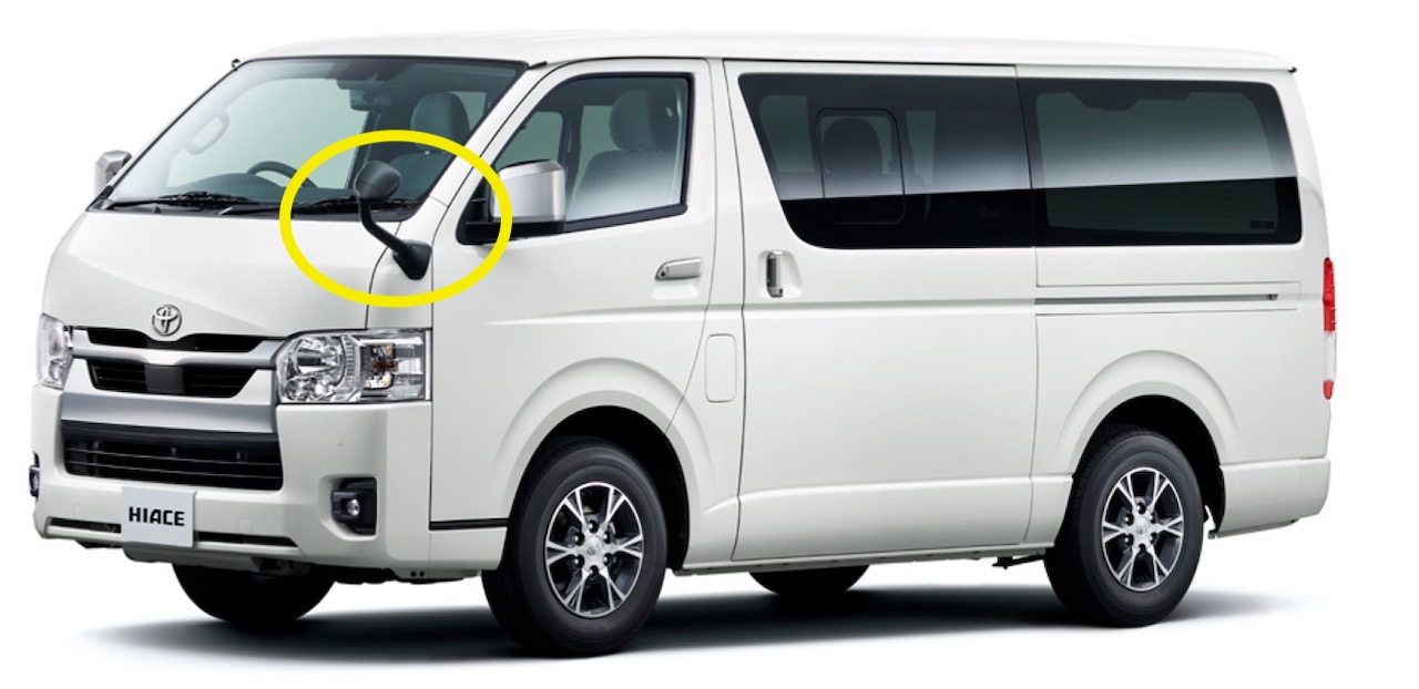 これは直前直左という保安基準があって、ミラーまたはカメラで車の左前の死角が見えればOKなので、今回は全グレードパノラミックビューモニターで確認できるようになったのでガッツミラーを装備する必要がなくなったため。