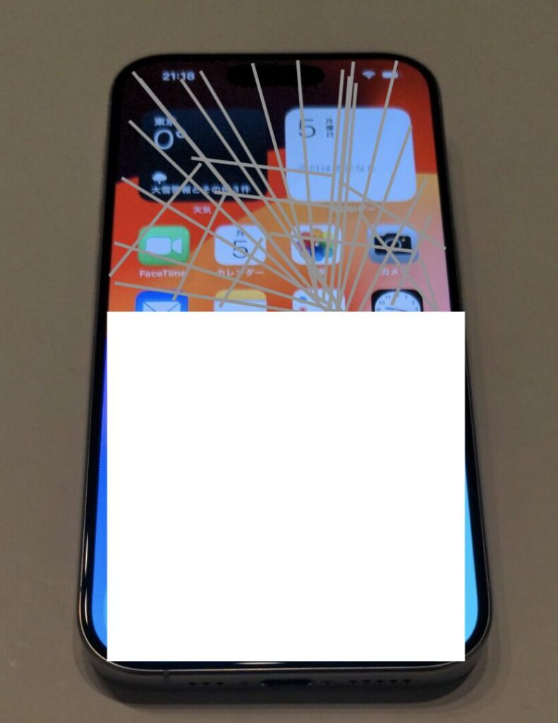 先日自転車の整備中に誤って工具をiPhoneの上に落としてしまい、液晶破損!!