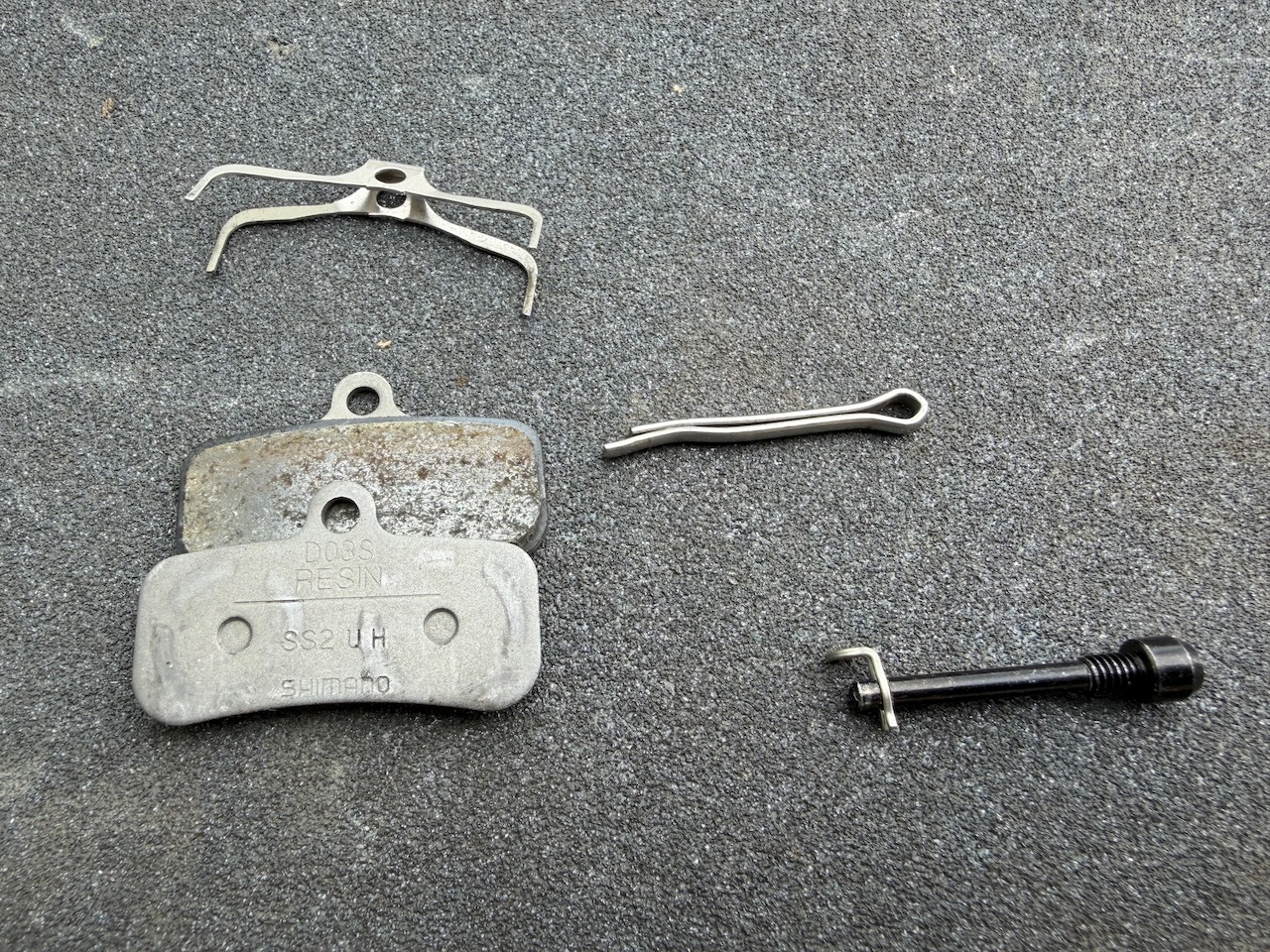 また、ブレーキパッド交換の際、シマノのブレーキパッドなら割りピンも付属してくるので問題ないのだが、社外パッドの場合は割りピンが付属しないので、別途新品の割りピンを揃えておく必要がある。
