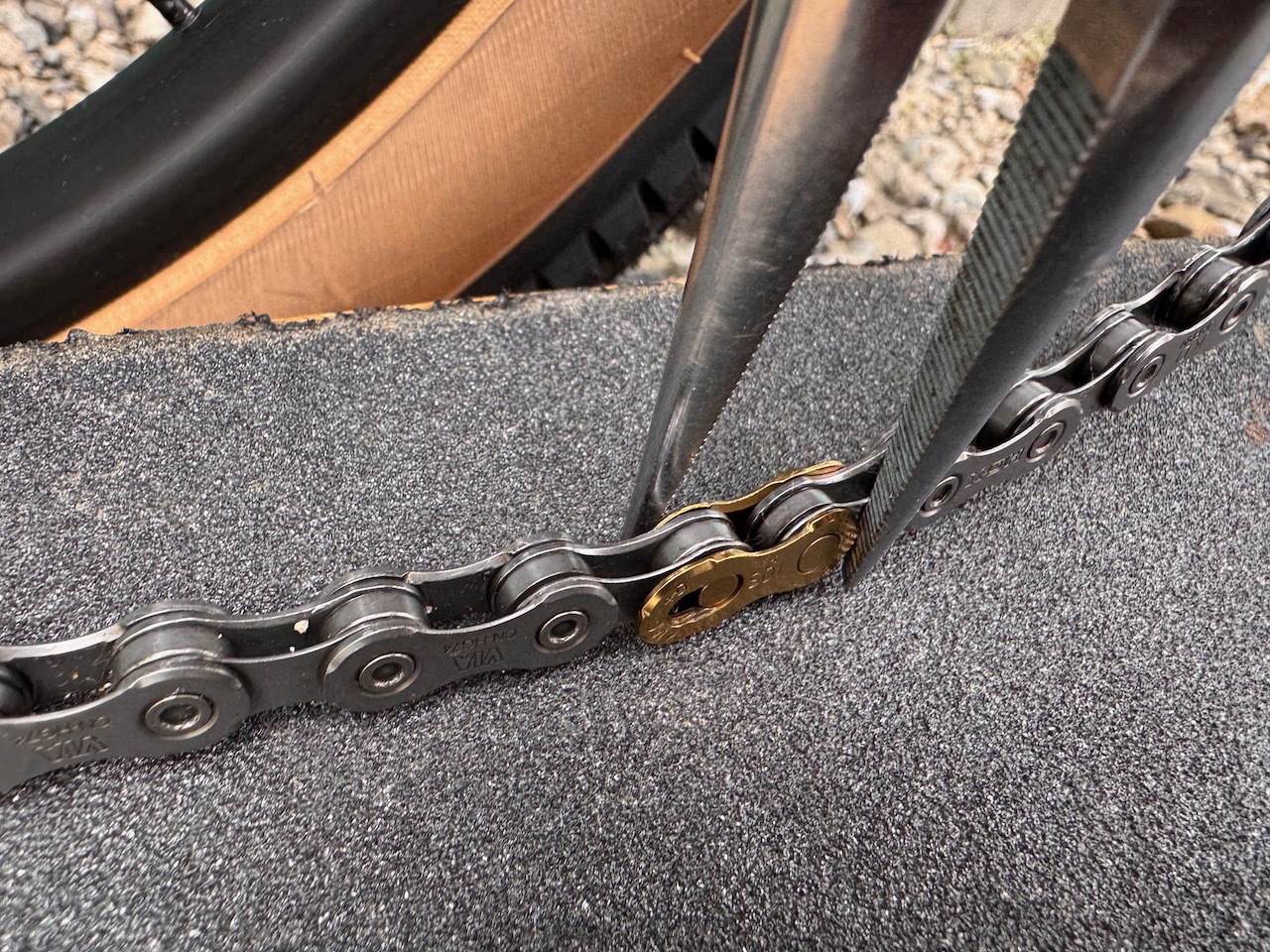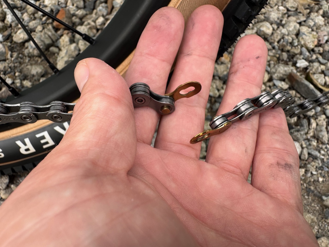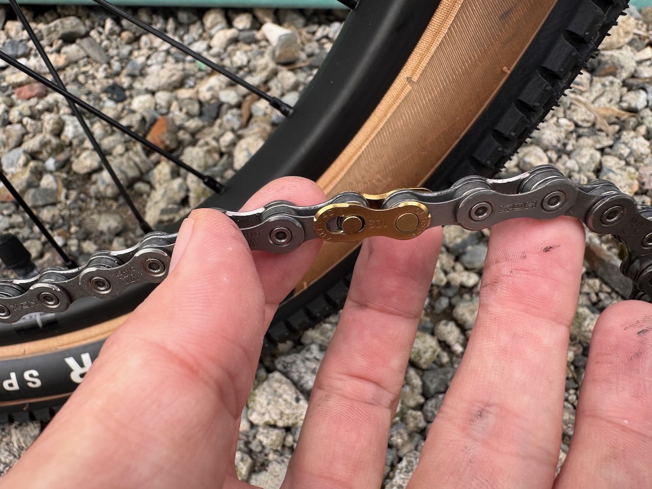 ここまでブログ読んでて、なんでミッシングリンクの色がチェーンと合ってないの?と疑問を持った人もいるでしょうが、実はこれわざとチェーンとは異なる色のミッシングリンクを使っている。