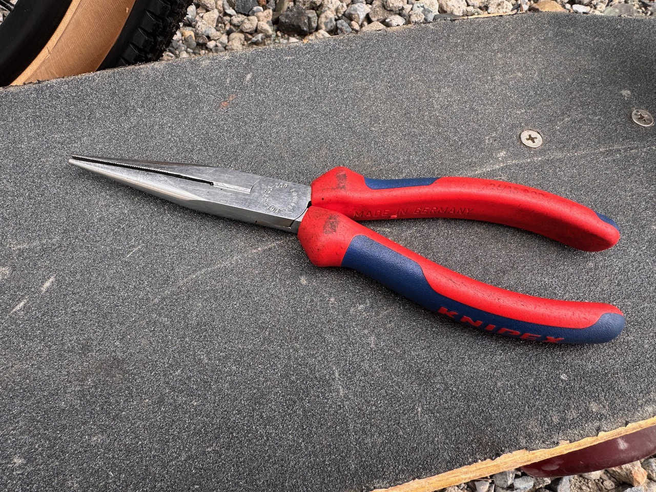 用いるのはラジオペンチ(ミッシングリンクの専用工具はなくとも、ラジペンは工具箱に入っている人も多いでしょう。なくても、ダイソーのラジペンで十分)。