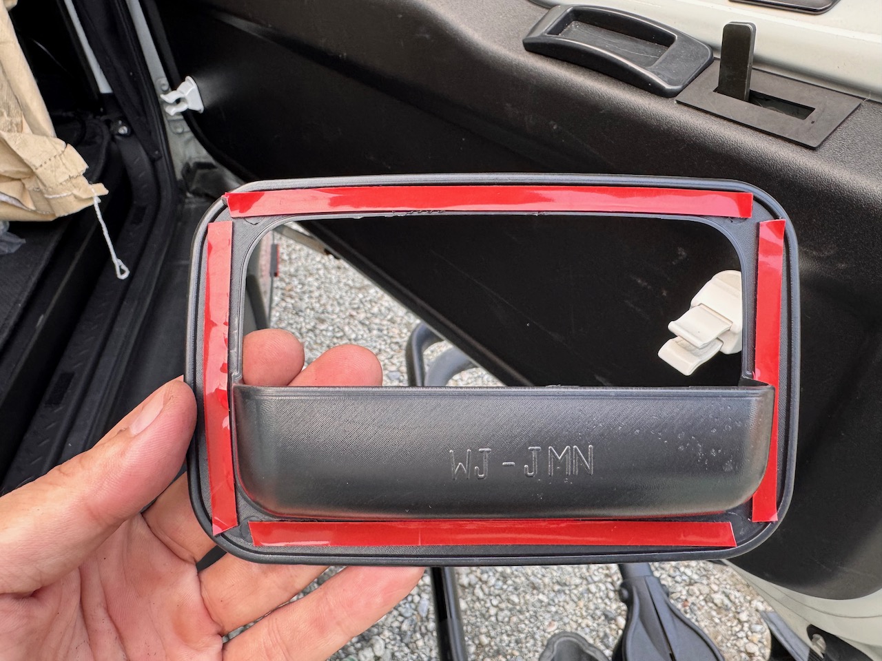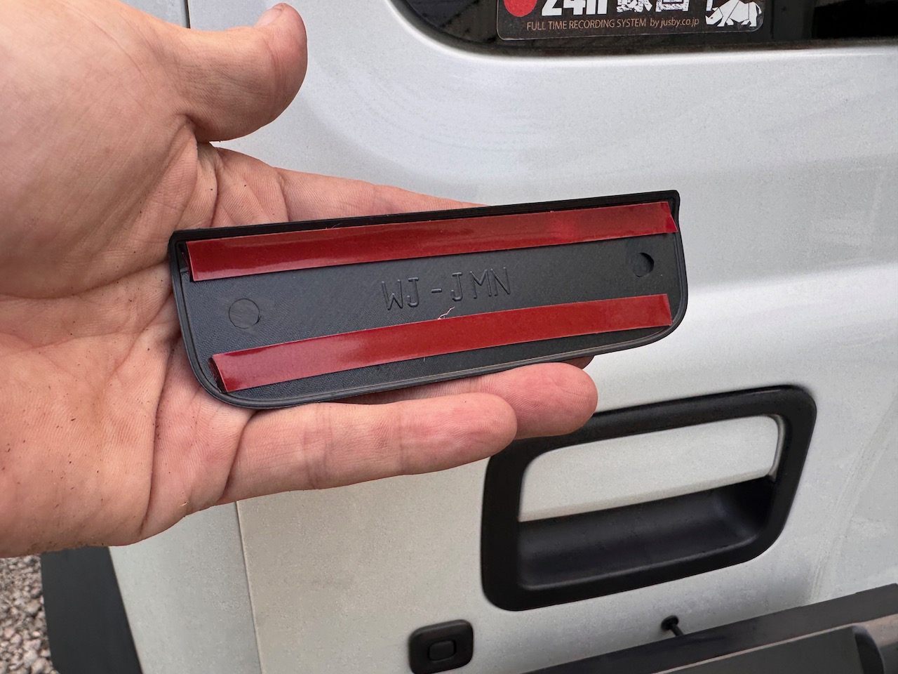 ジムニーのドアノブ近辺が傷だらけで先日コンパウンドで磨いて補修したのだが、また傷が入るのが嫌なのでドアノブカバーを導入した(とりあえずリアから)。