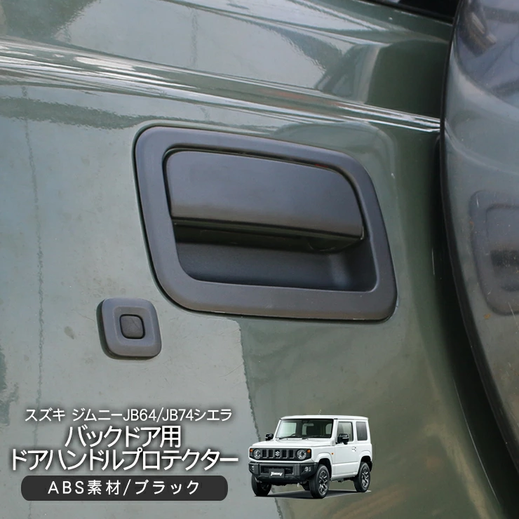 JB64/JB74向けには様々なドアハンドルプロテクターが販売されているが、今回はジムニーの樹脂製のバンパーやオーバーフェンダーと親和性の高いABS樹脂製のものを購入した。