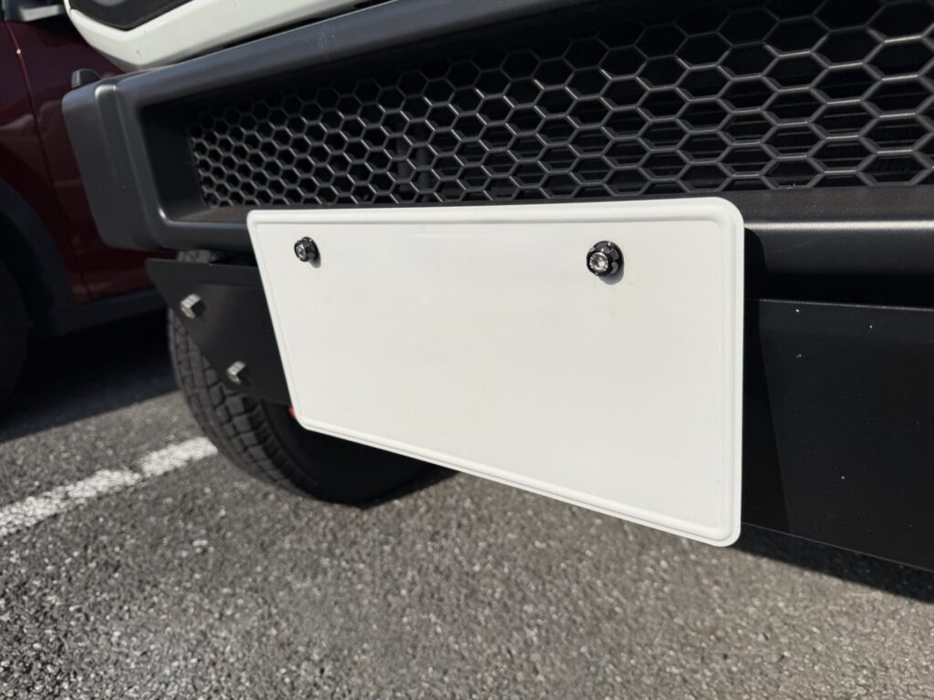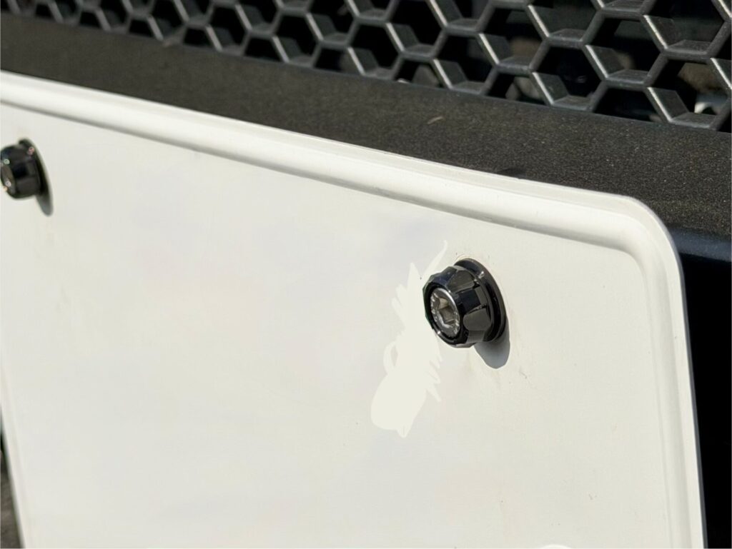 ちなみに、リアのナンバープレートボルトも同様に交換できるが、普通車のジムニーシエラの場合はボルトの封印があるので1本しか交換できない(軽のジムニーなら、リアのナンバープレートボルト2本とも交換できる)。
