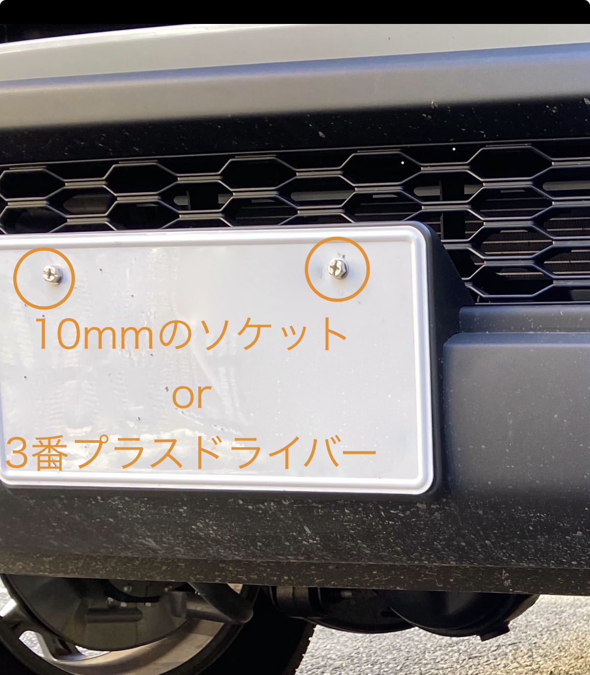- プラスドライバーor 10mm六角ソケット(純正のナンバープレートボルト外し用)