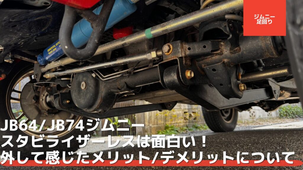 スタビライザーはコーナーでロールを抑える効果があるのだが、オフロードでは逆にロール方向の揺れが増えてしまうしまう場合もある。ジムニーのようなオフロード車はデメリットの影響も大きいので、スタビレスの選択肢もありになってくる。