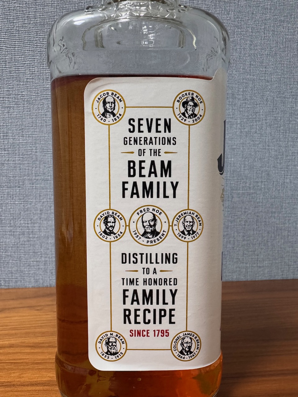 ラベルサイドにはおじさんが描かれているが、これはジムビーム創業者Jacob Beamから7代目まで、歴代の社長の存命期間と顔がえがかれているのだ。
