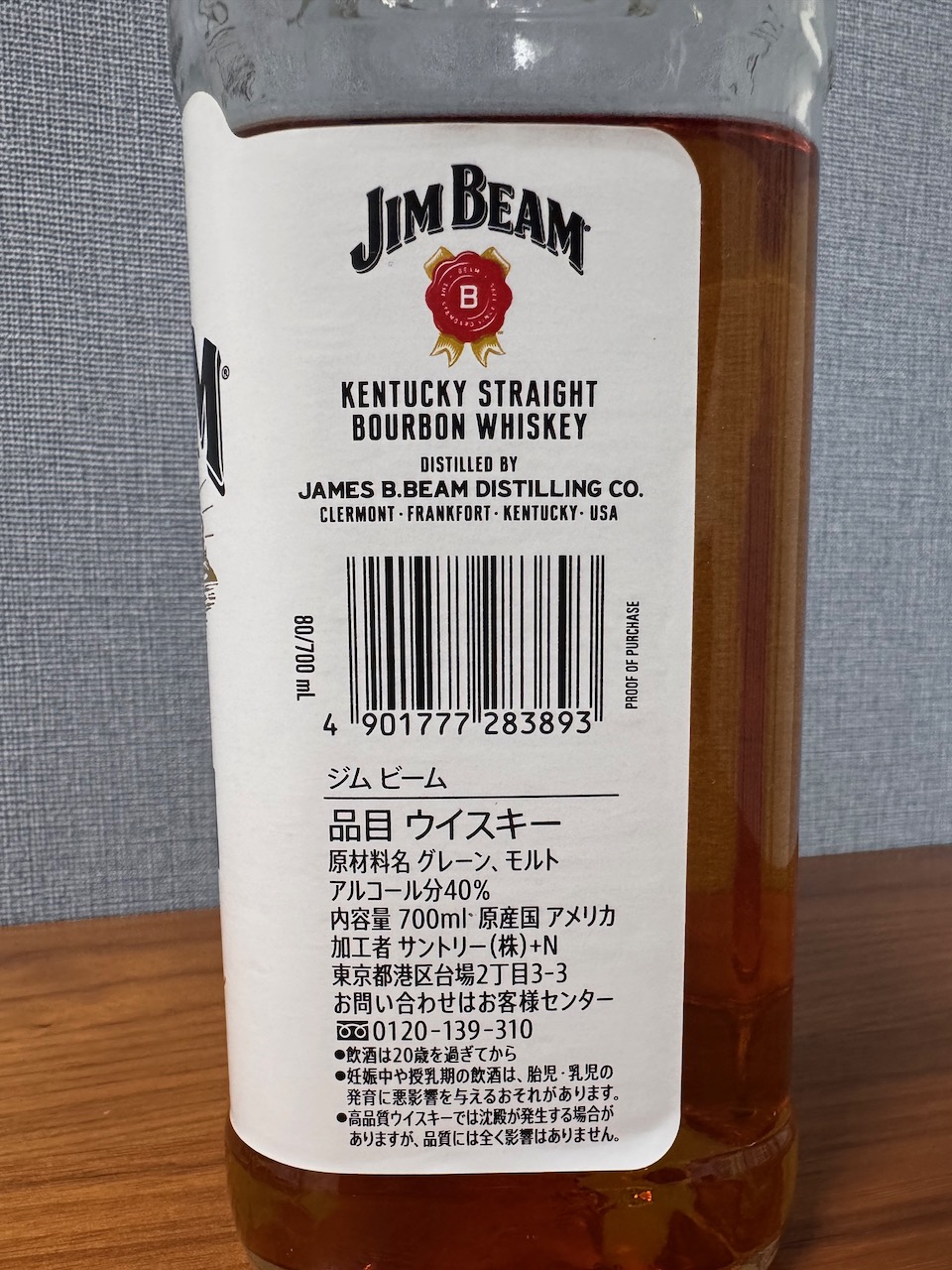 ジムビームはサントリーに買収されたので、加工者はサントリー(株)の表記。
