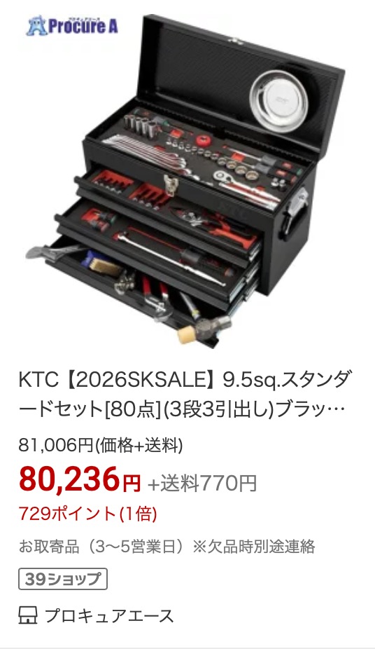 こんなに安く一流メーカーであるKTCの工具が揃うので、欲しくなりません?そこそこ工具を揃えている人からするとハンカチを噛みたくなるお買い得セットだが、これからイチから工具揃える整備初心者にはSKセール一択と言っても 過言ではない内容です!