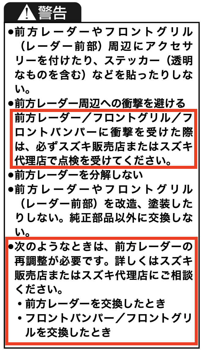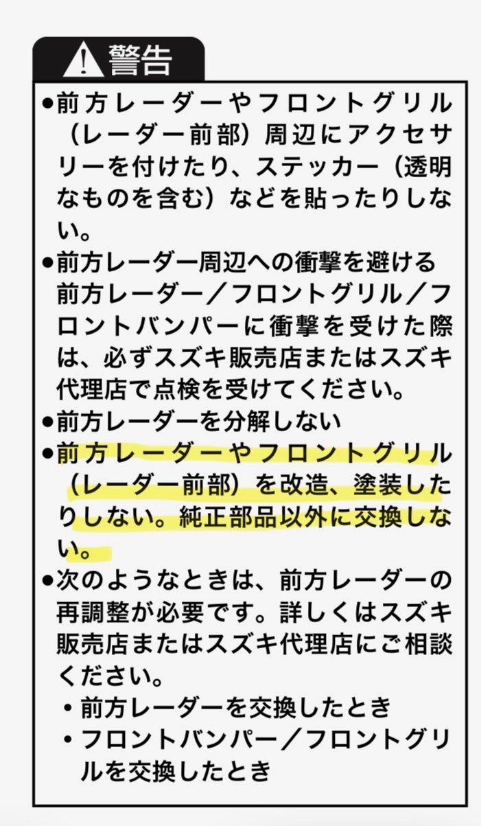 5型JB64/JB74のオーナーズマニュアルにフロントバンパー交換禁止の記載