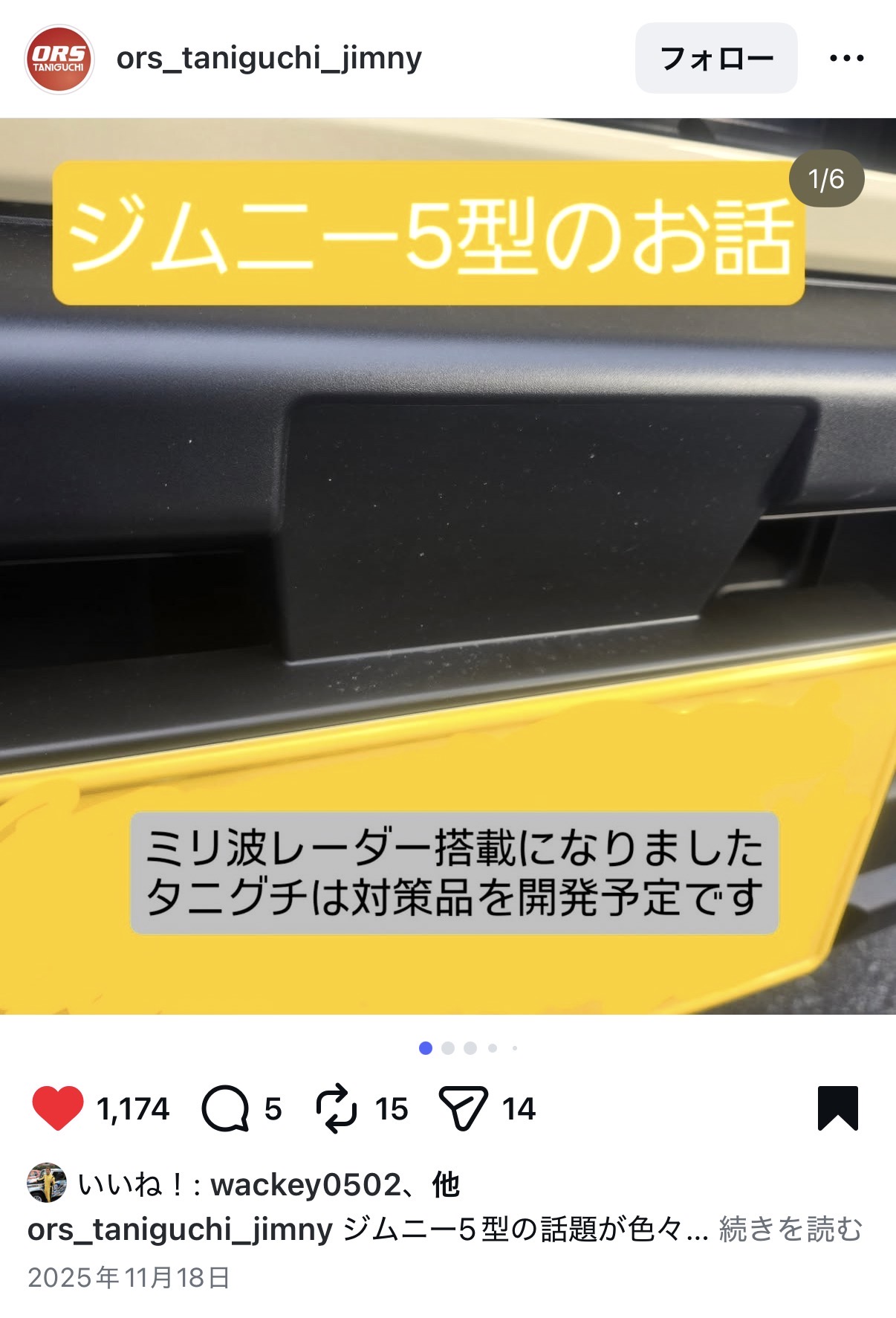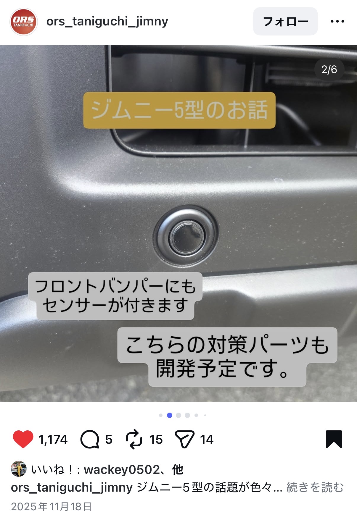 ジムニーのパーツメーカーの中には、ミリ波レーダーを移設なりして装着できるバンパーを開発中である。