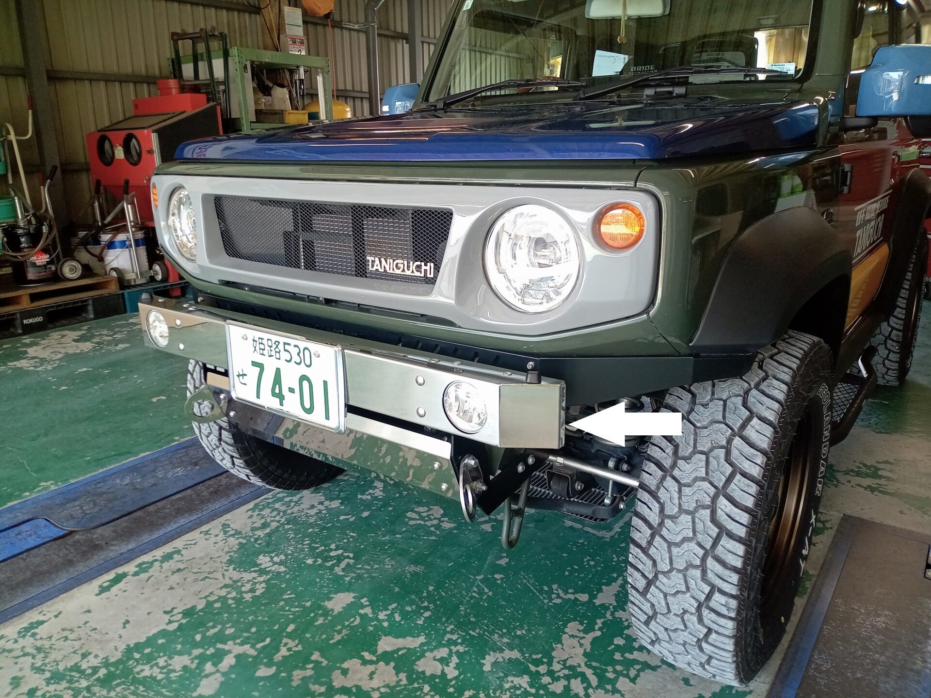 ジムニーカスタムといえば、アプローチアングルを稼いだりエクステリアのイメチェンのためショートバンパーやチューブバンパーにしたり、前部にウインチを取り付けたりカスタムする人も少なくないが、下のようなカスタムはご法度になってしまったのである。。