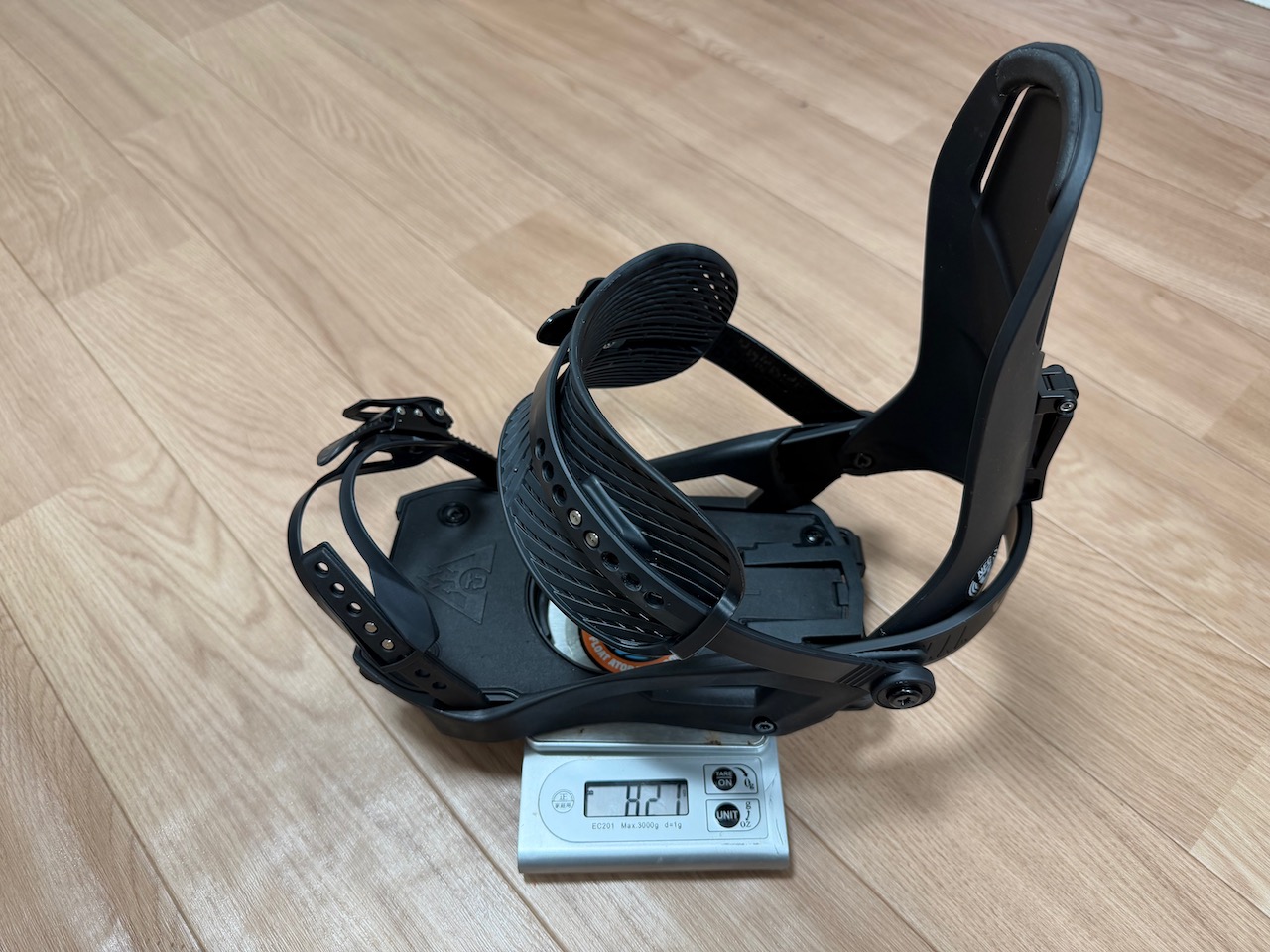 バートンの一番安いバインディングだが、まあまあ重いという結果。